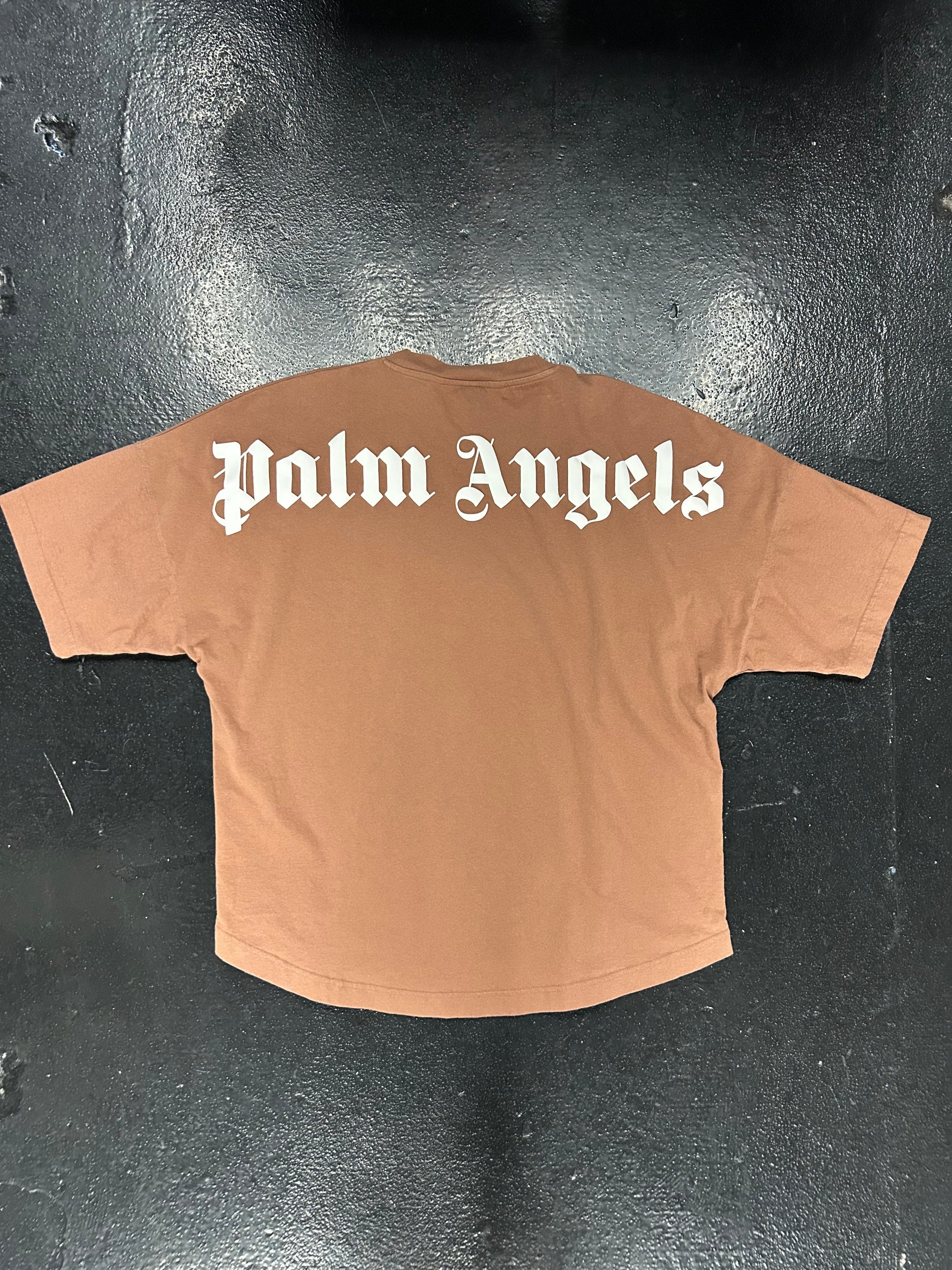 PALM ANGELS BACK LOGO BROWN TEE (PRE OWNED)